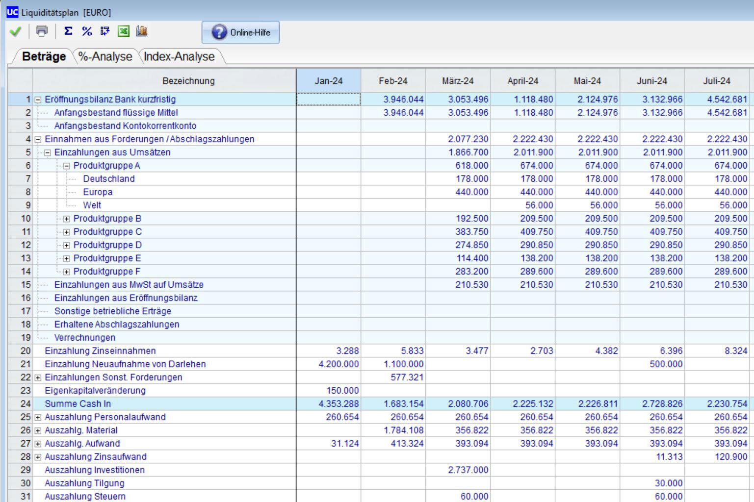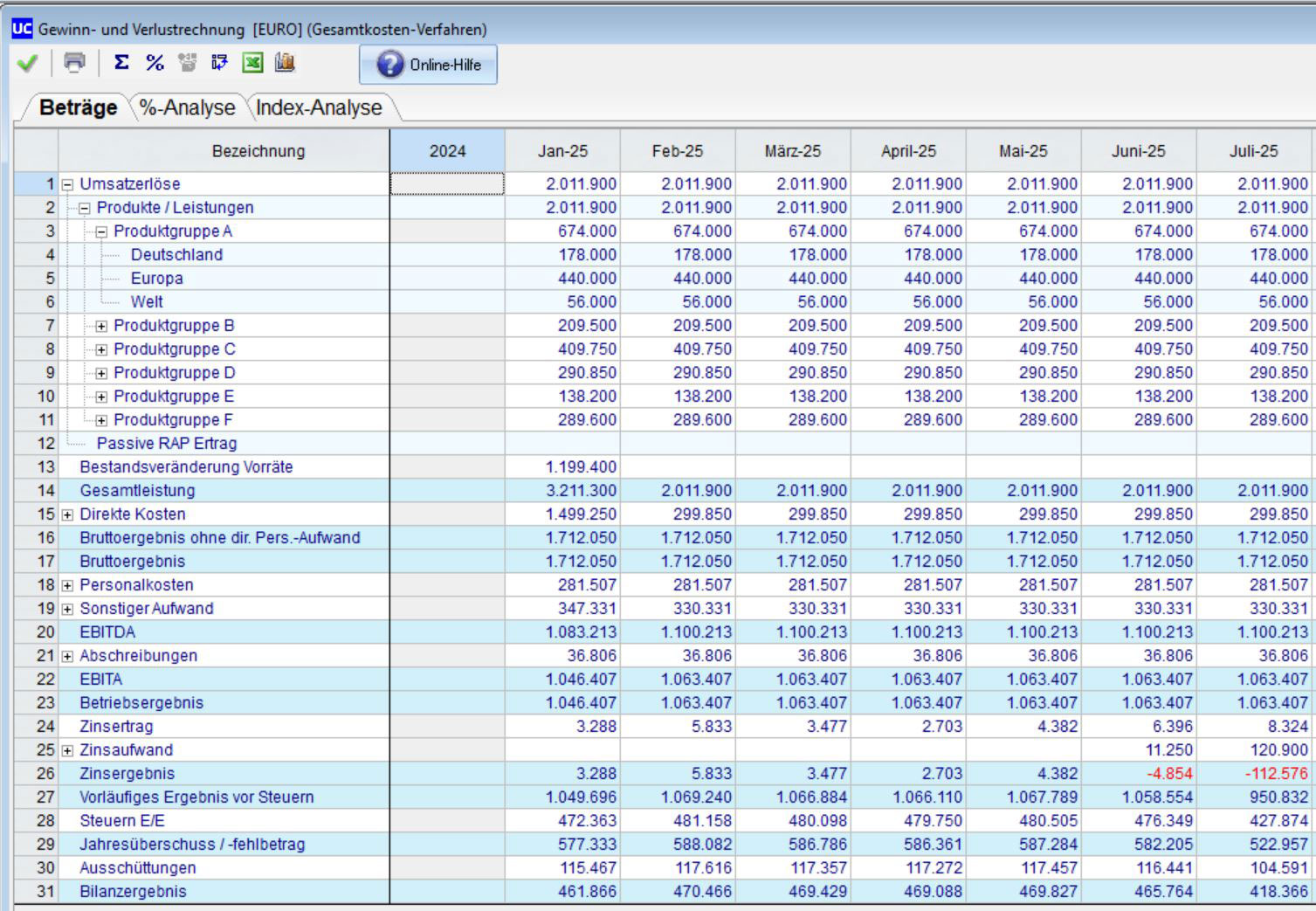- Automatische Erstellung von Plan-Bilanz, GuV, Liquidität & Cashflow