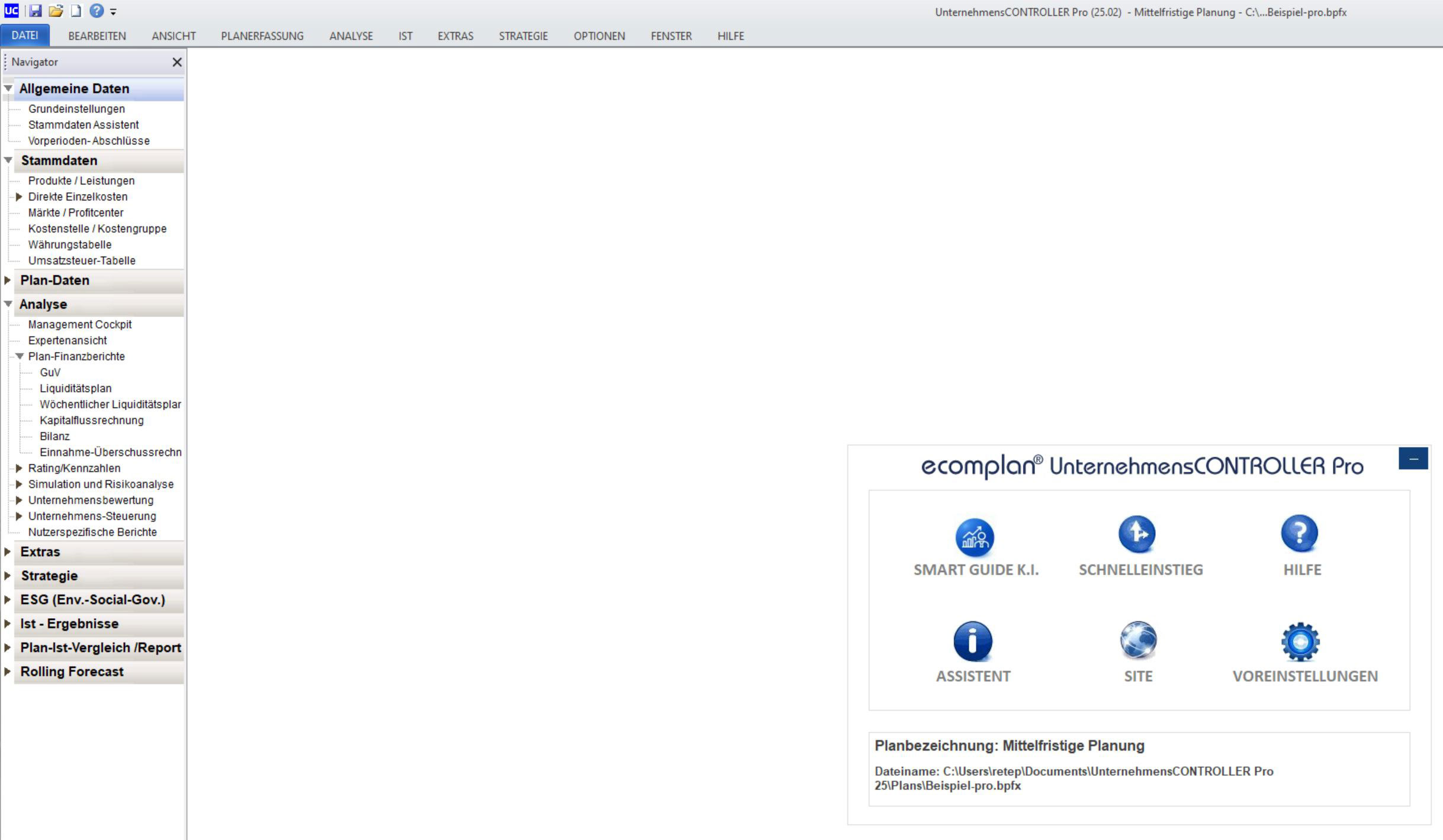 Mit dem ecomplan UnternehmensCONTROLLER Pro planen, bewerten und steuern Sie Ihr Unternehmen strategisch und operativ – schnell, fundiert und transparent.